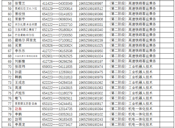石河子工程职业技术学院2019年高职扩招第二阶段考试已结束,现对拟录取人员名单公示如下:
