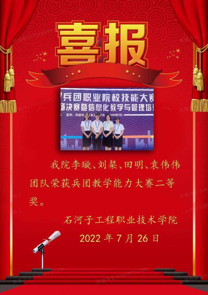 我院李旋、刘燦、田明、袁伟伟团队荣获兵团教学能力大赛二等奖