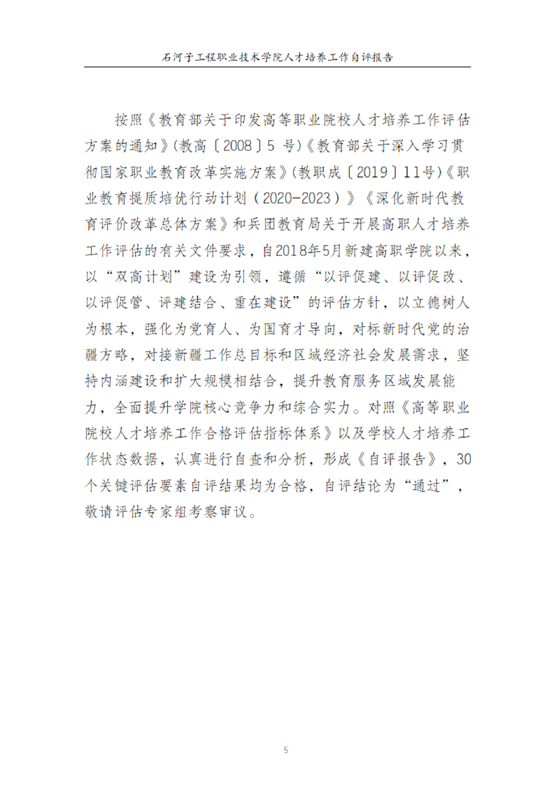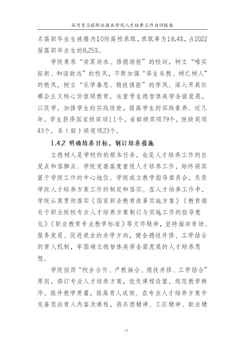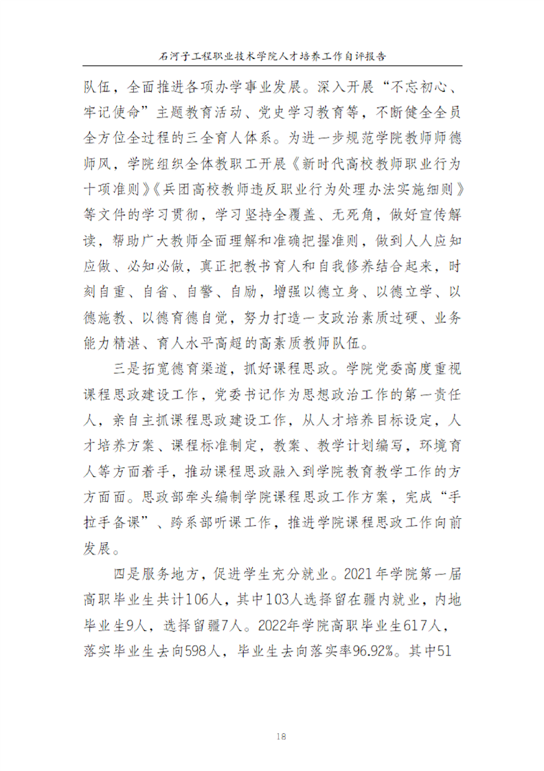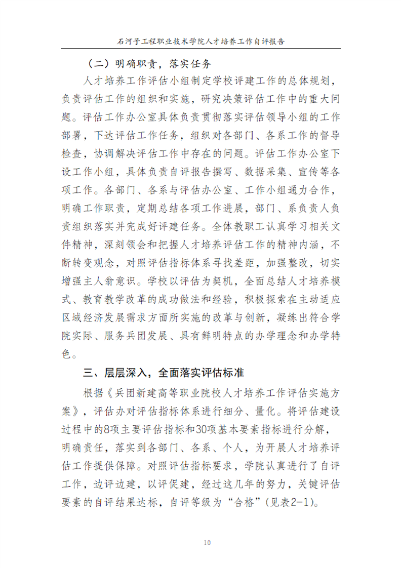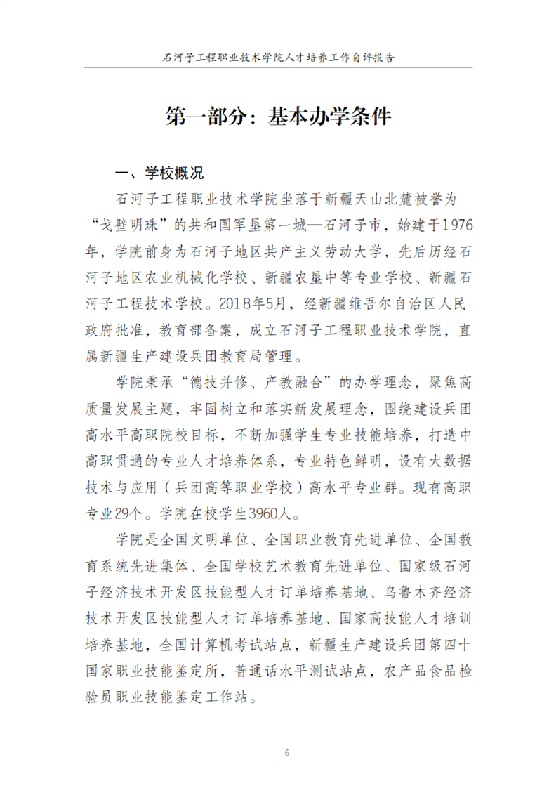 石河子工程职业技术学院人才培养工作评估自评报告