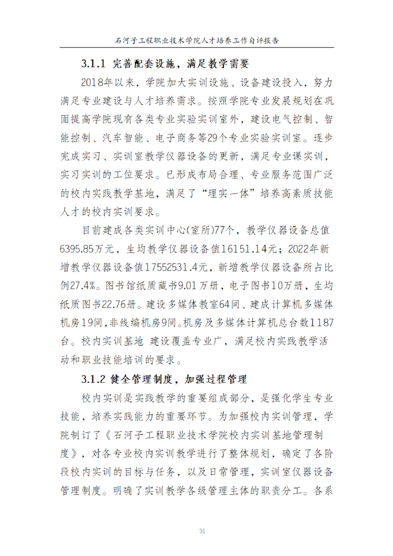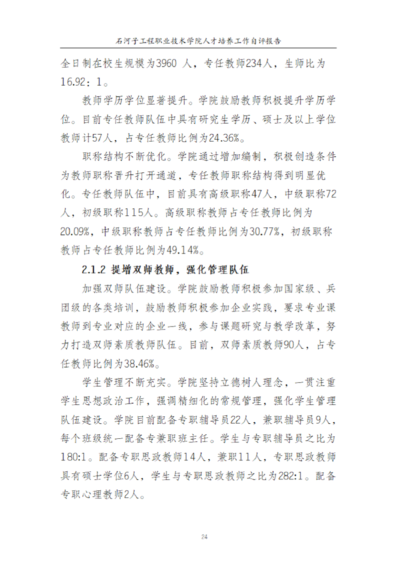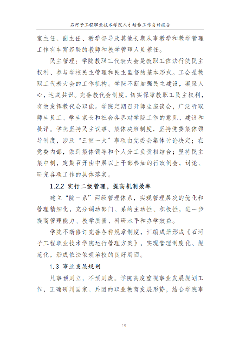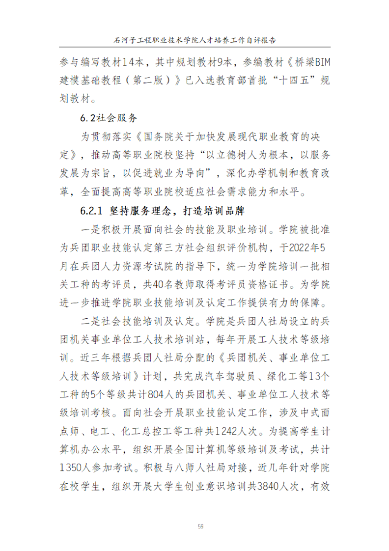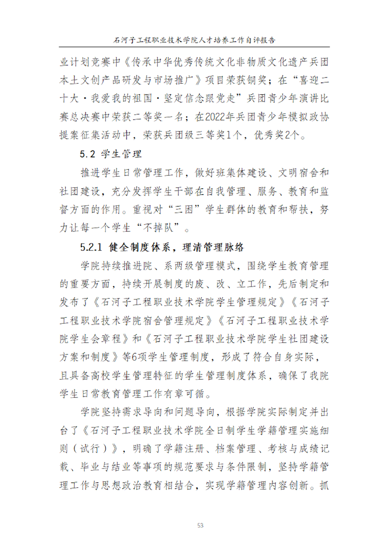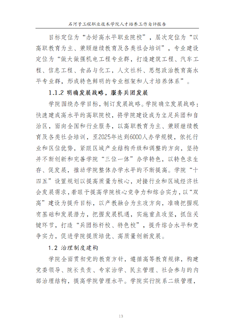 石河子工程职业技术学院人才培养工作评估自评报告