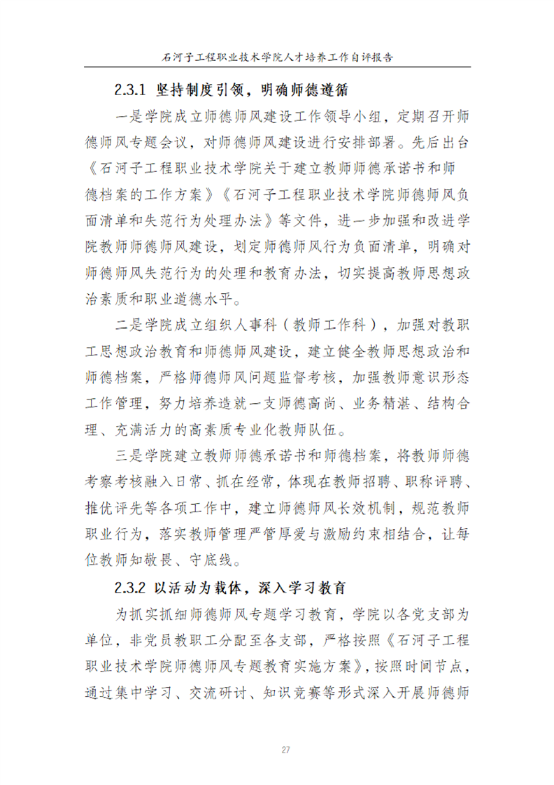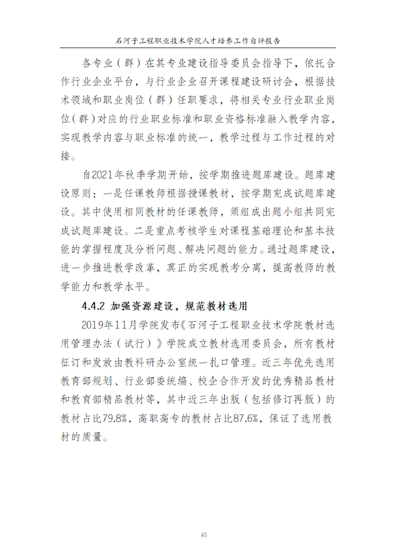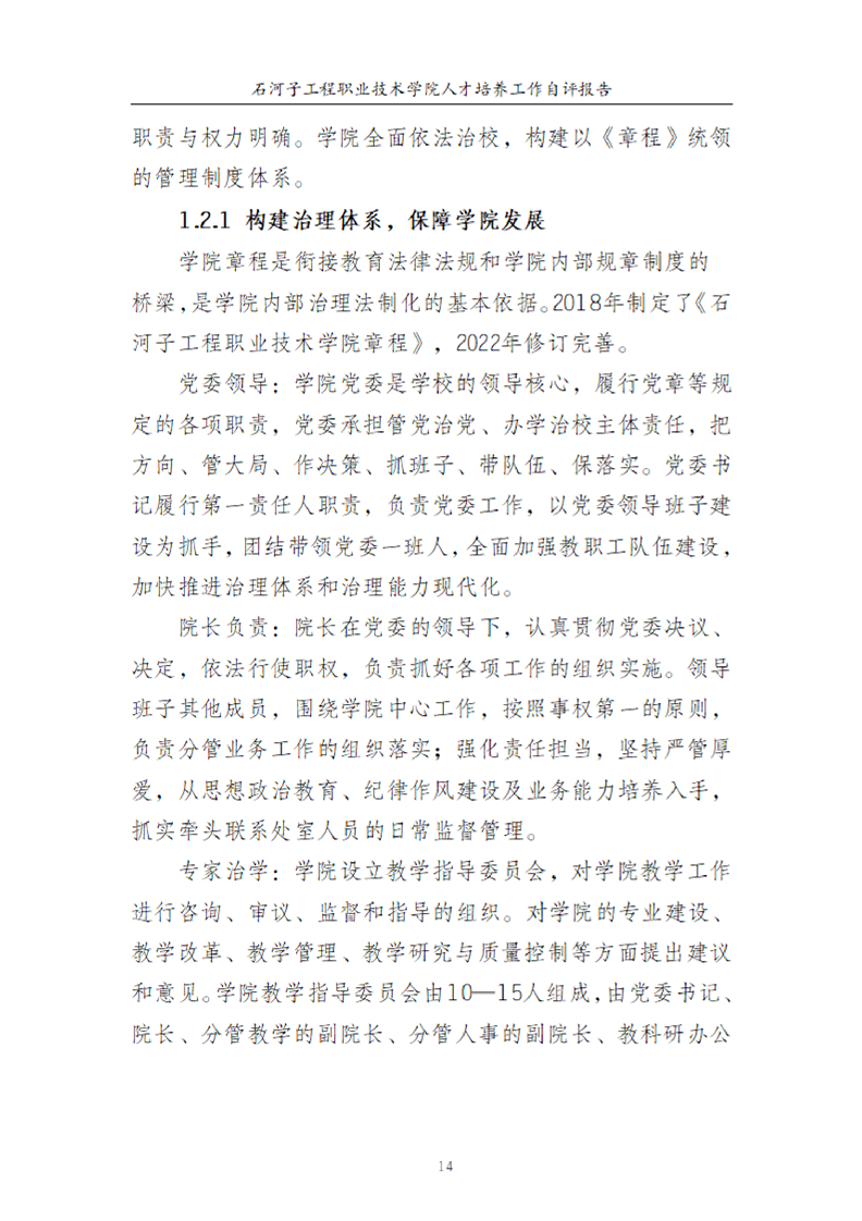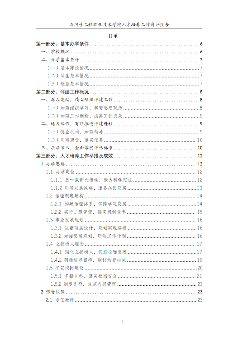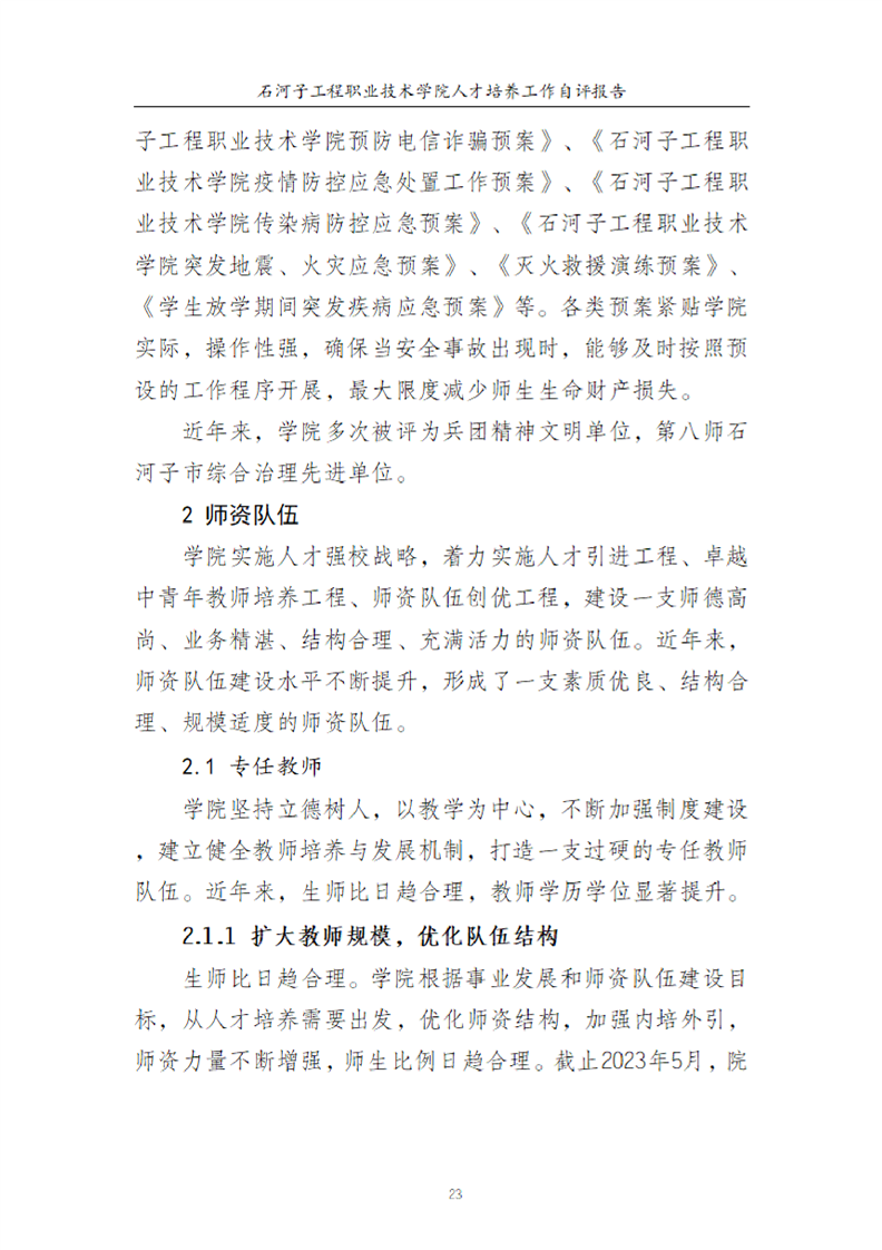 石河子工程职业技术学院人才培养工作评估自评报告