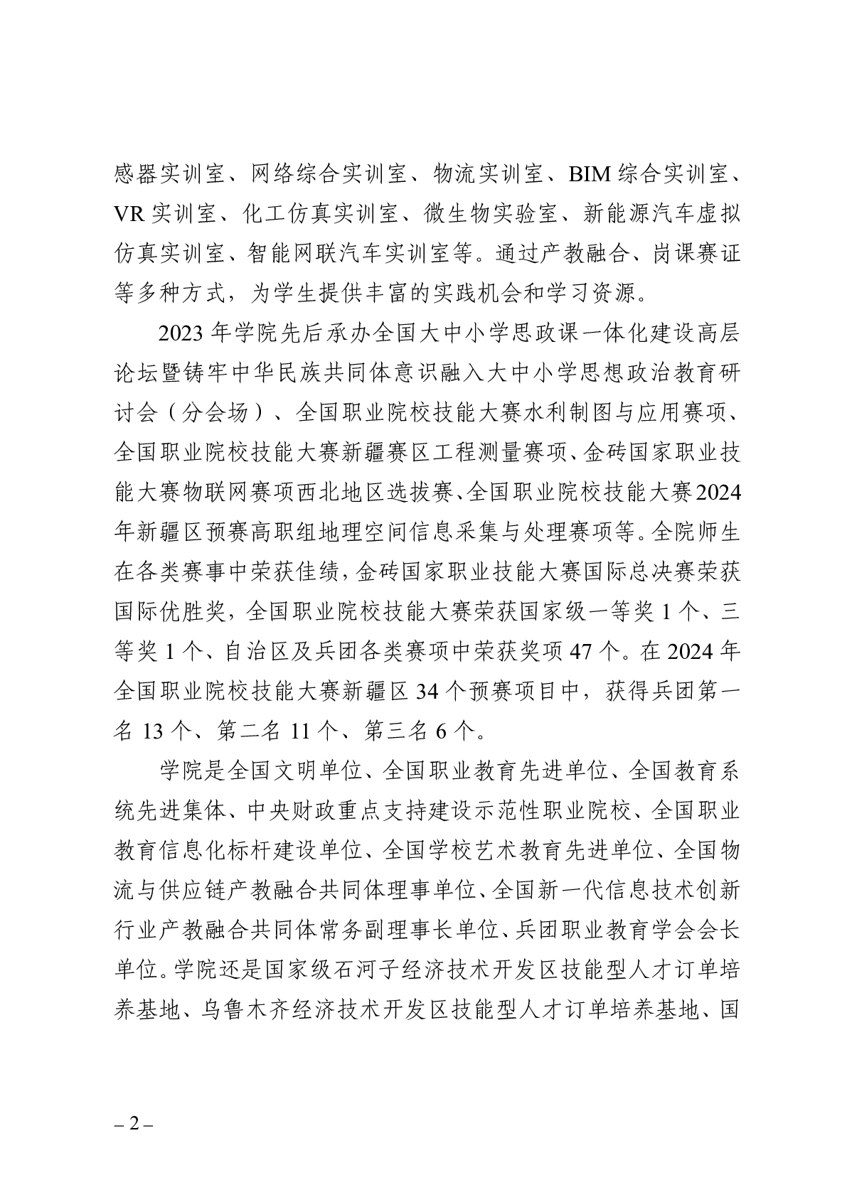 石河子工程职业技术学院2024年五年一贯制招生简章