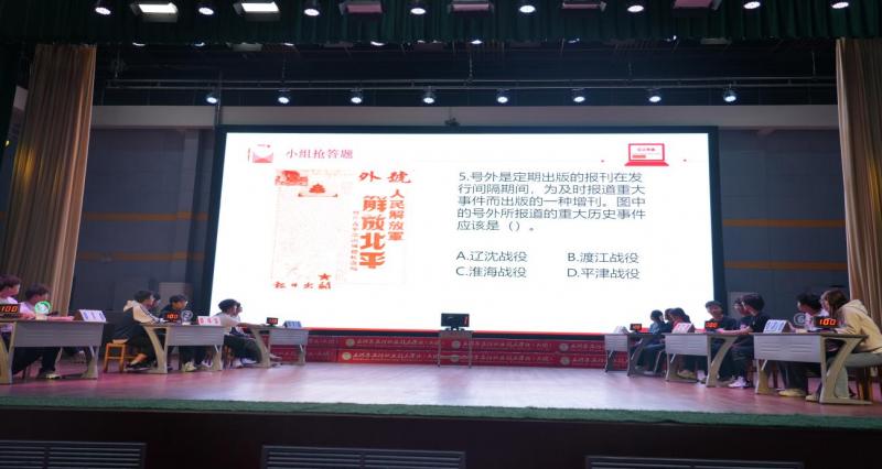 进入抢答题环节,比赛气氛瞬间白热化。选手们全神贯注,目光紧紧锁定抢答器,现场氛围紧张到了极点。每当题目一出,大家迅速反应,争分夺秒地按下抢答器,激烈的竞争将现场气氛一次次推向高潮。各队选手你追我赶,互不相让,充分展现出了新时代青年积极进取、勇于竞争的精神品质。