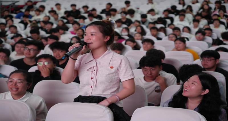 附加题环节进一步拓展了比赛的深度与广度,着重考验选手们知识的全面性和思维的灵活性。面对难度较高的附加题,选手们灵活思考、积极应答,展现出了出色的应变能力和扎实的知识储备,充分彰显了我院学子的良好精神风貌和卓越的综合素质。??在比赛过程中,为了缓解紧张气氛,增强观众的参与感,还特别穿插了观众互动唱红歌环节。熟悉而激昂的旋律响起,现场观众纷纷跟唱,歌声嘹亮,振奋人心。激昂的旋律回荡在整个赛场,不仅有效缓解了比赛的紧张氛围,更让红色精神在歌声中得到了进一步的传承与弘扬,使全场沉浸在浓厚的红色文化氛围之中。