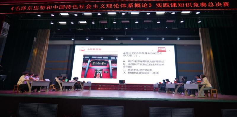 实践教学作为思政课的重要一环,《毛泽东思想和中国特色社会主义理论体系概论》课程组精心策划,将实践课形式聚焦知识竞赛。活动覆盖全校55个班级,经班级初赛选拔、系级复赛淘汰,最终18名学生从165名系赛入围者中脱颖而出,晋级校级总决赛。5月27日下午,以“红色传承?学史明志”为主题的新民主主义革命专题知识竞赛总决赛在学术报告厅隆重举行。思想政治教育工作部副主任吴乐棋、思政课骨干教师任芽丽、邢瑞三位老师担任专业评委,为赛事的公平公正与学术专业性提供了坚实保障。