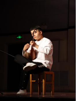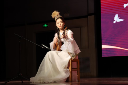 舞罢便是少数民族乐器乐演奏,优美动听的弦乐,让我们深感生活在大美新疆这片热土上的幸福。