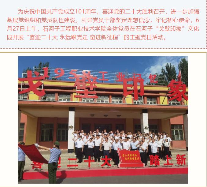 石河子工程职业技术学院开展“喜迎二十大 永远跟党走 奋进新征程”的主题党日活动