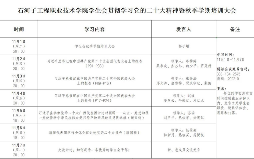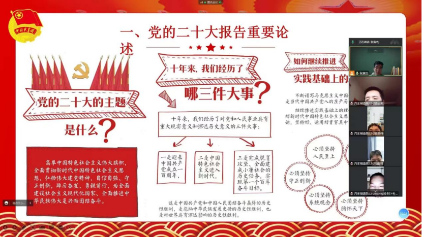 石河子工程职业技术学院各级团学组织坚持以上率下,以忠诚践行初心,以实干担当使命,切实肩负起做好新时代党的青年工作的光荣职责,迅速将会议精神带到团员青年学生中去。各级团学组织采取“领学+自学”相结合的学习方式,率先垂范领学促学党的二十大精神,开展“集中学+自主学”穿插式的主题团课、研讨交流等学习活动,力促报告精神入脑入心。