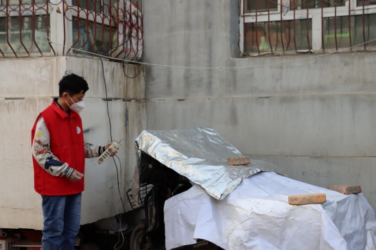 志愿者们在石总场一中附近的经营铺面、小吃摊位发放人民调解、法律援助宣传单;在小区内整治飞线充电;清理小区内可见垃圾、污染物等。