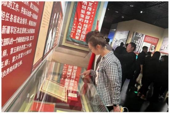 军垦博物馆前,王震将军的雕像屹立在眼前,庄严肃穆。走进馆内,承载着兵团历史和军垦精神的文物罗列开来,伴随讲解员的介绍,学员们对兵团的“辉煌历史”有了全面认知,对兵团精神的向往更是溢于言表。