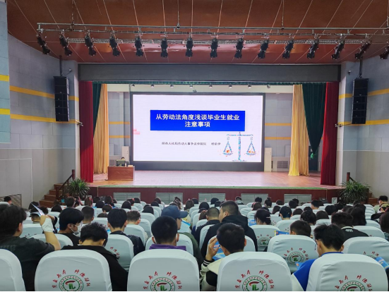 ??为宣传劳动法律法规,增强毕业生求职风险防范意识,护航毕业生合法合规、顺利就业。5月5日下午,石河子工程职业技术学院团委联合石河子市人力资源和社会保障局,在学术报告厅举行了主题为“人社普法进校园、仲裁服务到身边”的就业普法宣传讲座。