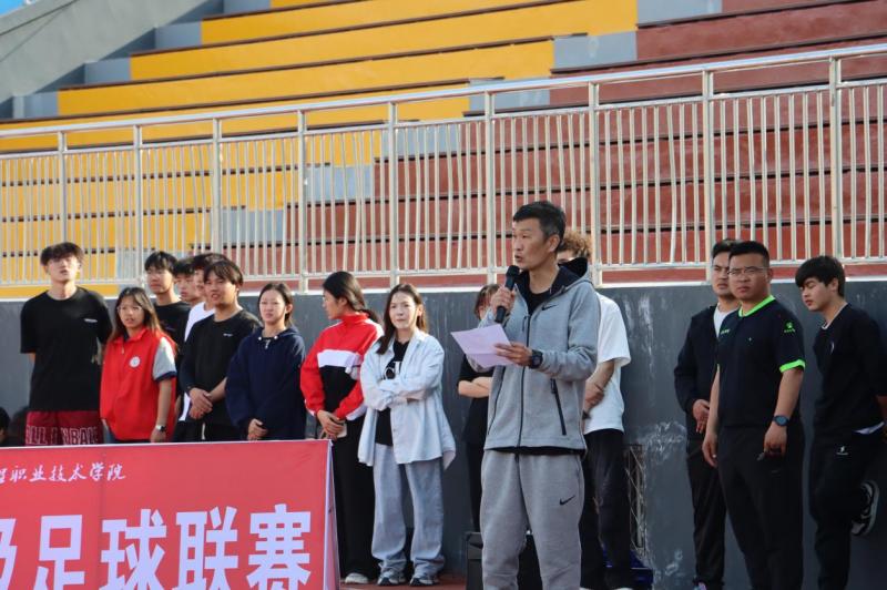 随后,学院团委书记杨子嶓宣布石河子工程职业技术学院第三届超级足球联赛开赛,各位教师代表一起开球,比赛正式开始。
