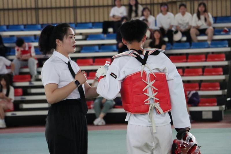 武术散打、跆拳道比赛不仅是力量与胆量的较量,更是智慧的博弈与对抗。运动员们精神抖擞,斗志昂扬,挥舞着强有力的拳头,踢出凌厉的腿法,展现出了极高的竞技水平和不屈不挠的斗志。教练们悉心观察、指导战术,成为运动员们的坚强后盾。
