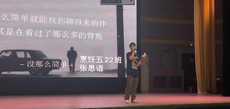 决赛现场气氛热烈,胡尔阿来·萨尔合提同学演唱的歌曲《凉凉》深沉低婉,让人仿佛置身那凄凉的意境中;姜小丹同学演唱的《美好事物》抒情优美,配合回忆感十足的视频,送上了毕业季最美好的祝福;张思语同学演唱的《没那么简单》时而激情澎湃,时而荡气回肠。选手们真挚细腻的表演,赢得在场观众们阵阵掌声。