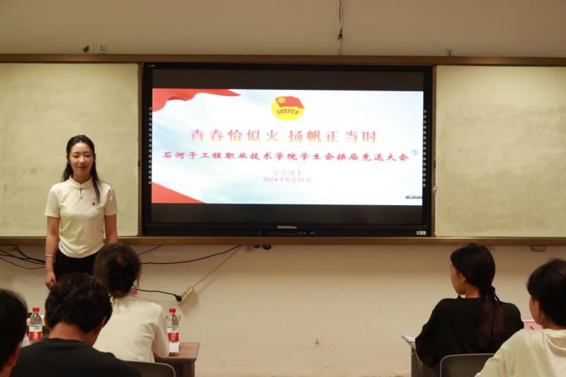 知不足而奋进,望远山而前行。为进一步加强学生自主管理,充分发挥学生干部的先锋模范作用,筑牢学院师生间的交流桥梁,石河子工程职业技术学院团委于5月31日下午18时召开2024年度学生会换届选举大会。本次大会由院学生会宣传部部长范悦悦主持,团委张晗蓓老师和学生科(学生资助管理科)孙锐老师担任评委,院学生会全体成员参与。