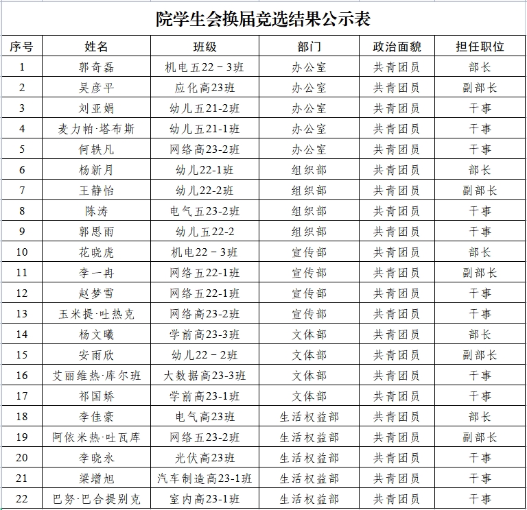 经过竞职演讲和答辩环节的综合考量,学院新一届学生会成员名单已经产生,现公示如下: