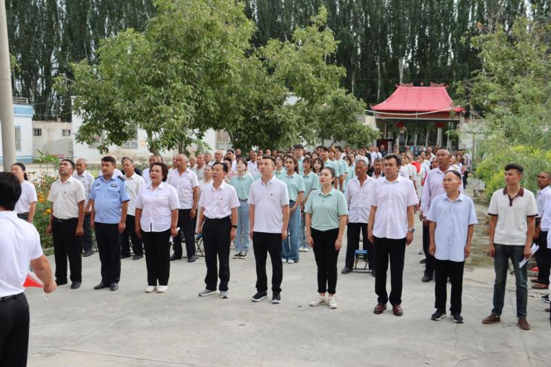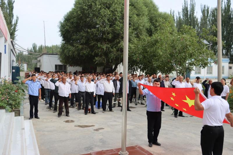 8月5日早上10时,石河子工程职业技术学院暑期“三下乡”民族团结实践团到达布拉克苏乡吐尔恰巴格村,与当地的村民一起参加了庄严的升国旗仪式。