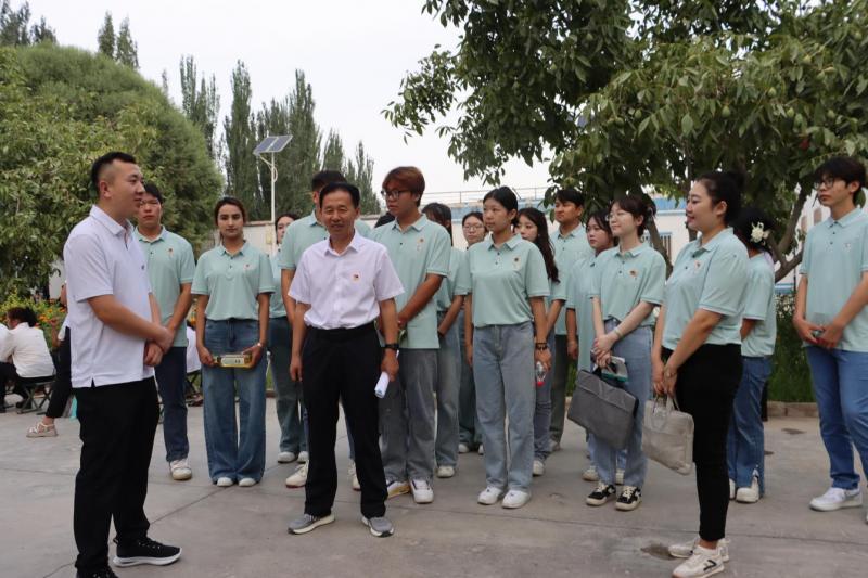 石河子工程职业技术学院党委委员、纪委书记,兵团教育局驻布拉克苏乡吐尔恰巴格村工作队队长简基松同志带领实践团师生参观了驻村工作队的办公、生活环境,了解村委会的基本情况。