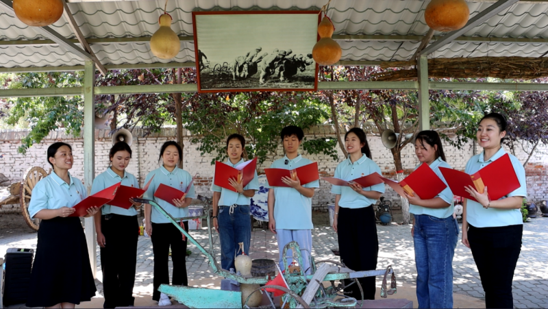 在军垦二代博物馆里,师生们与兵团传承人高爷爷、博物馆负责人陈馆长一起唱起雄壮有力的《兵团进行曲》。学院团委书记杨子嶓充满豪情地说:“我们所有团员青年,必须时刻牢记使命,弘扬和传承兵团精神,不断提高自身的政治素养和道德水平,做一名祖国需要的合格大学生!”