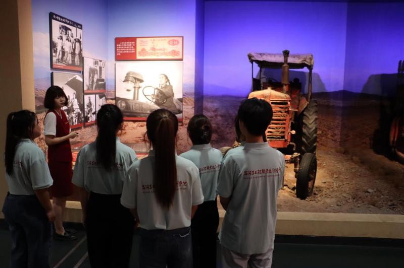 军垦二代博物馆馆长陈宇奇,给同学们讲述了当年老一辈军垦人,穿着补丁衣,吃着玉米粒,喝着涝坝水,住着地窝子,挥着砍土曼,披荆斩棘开荒造田的故事。