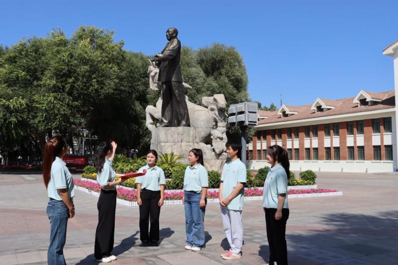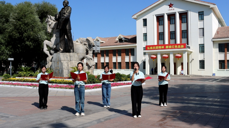 历史波澜壮阔,精神历久弥新。怀着激动的心情,团队成员在王震将军雕像前讲述王震将军踏勘选址建城的故事。这一刻,大家不仅仅是故事的讲述者,更是兵团精神的传承者。