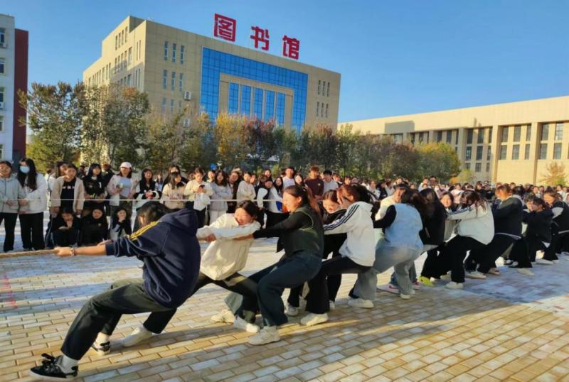 在柔和的斜阳中,人文社科系教师们也参与到拔河比赛中,进行了一场别开生面的比赛。当哨声响起,老师们斗志昂扬,充满了青春活力,同学们在旁边为老师们加油呐喊着,整个场面既激烈又温馨。