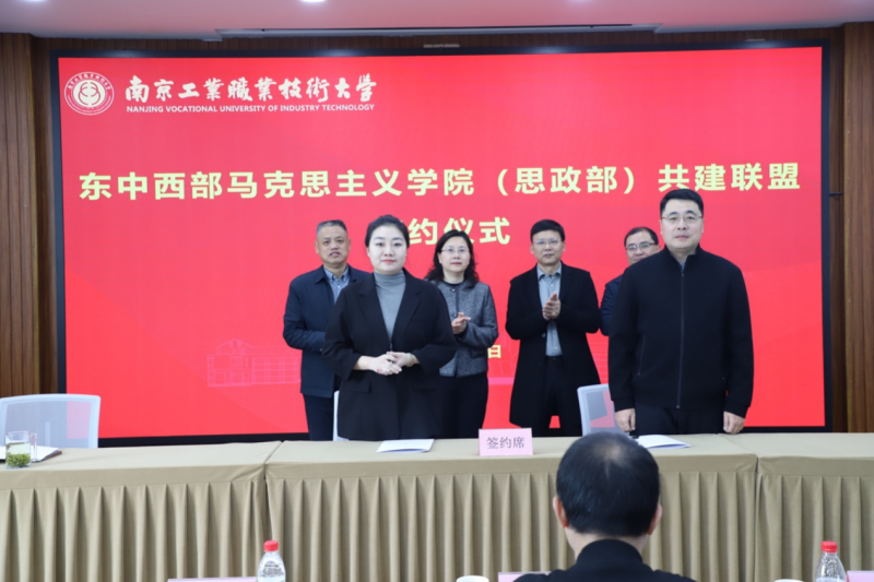 仪式上,杨子嶓与王晓峰一同签订了东中西部马克思主义学院(思政部)合作共建协议。杨子嶓表示,今后将加强与南京工业职业技术大学马克思主义学院的沟通交流,对照建设标准,找出学院思政工作的不足、思政理论课程体系建设的短板、思政教师队伍建设的差距,依托优势资源,建立健全体系,为学院建立马克思主义学院汲取成功经验和智力支持。