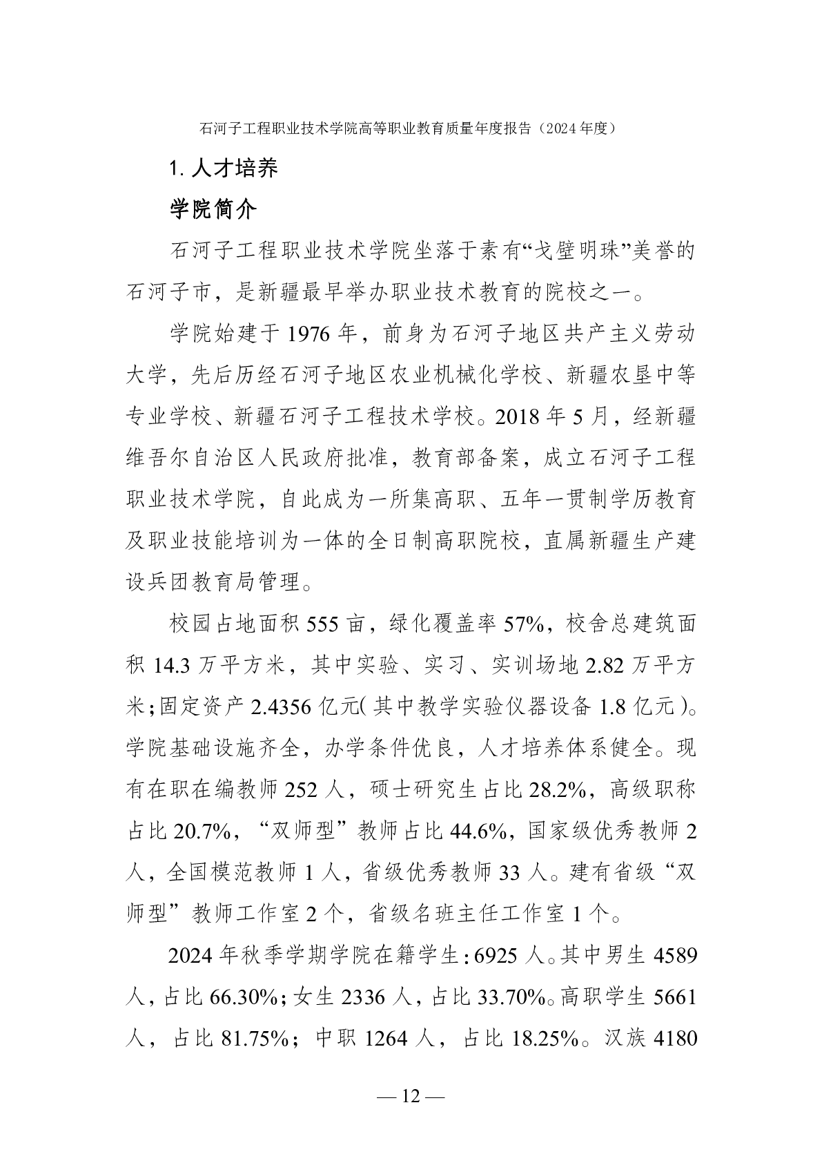 石河子工程职业技术学院高等职业教育质量年度报告(2024年度).pdf