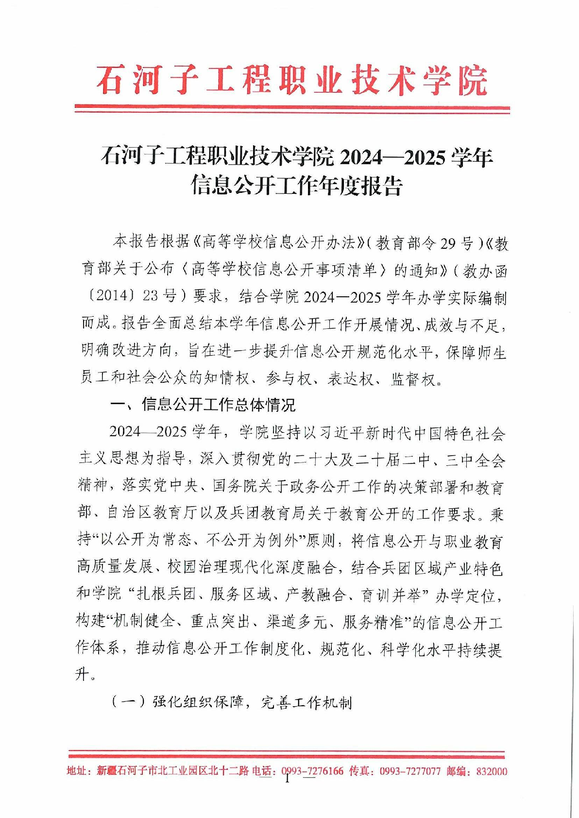 石河子工程职业技术学院2024—2025学年信息公开工作年度报告