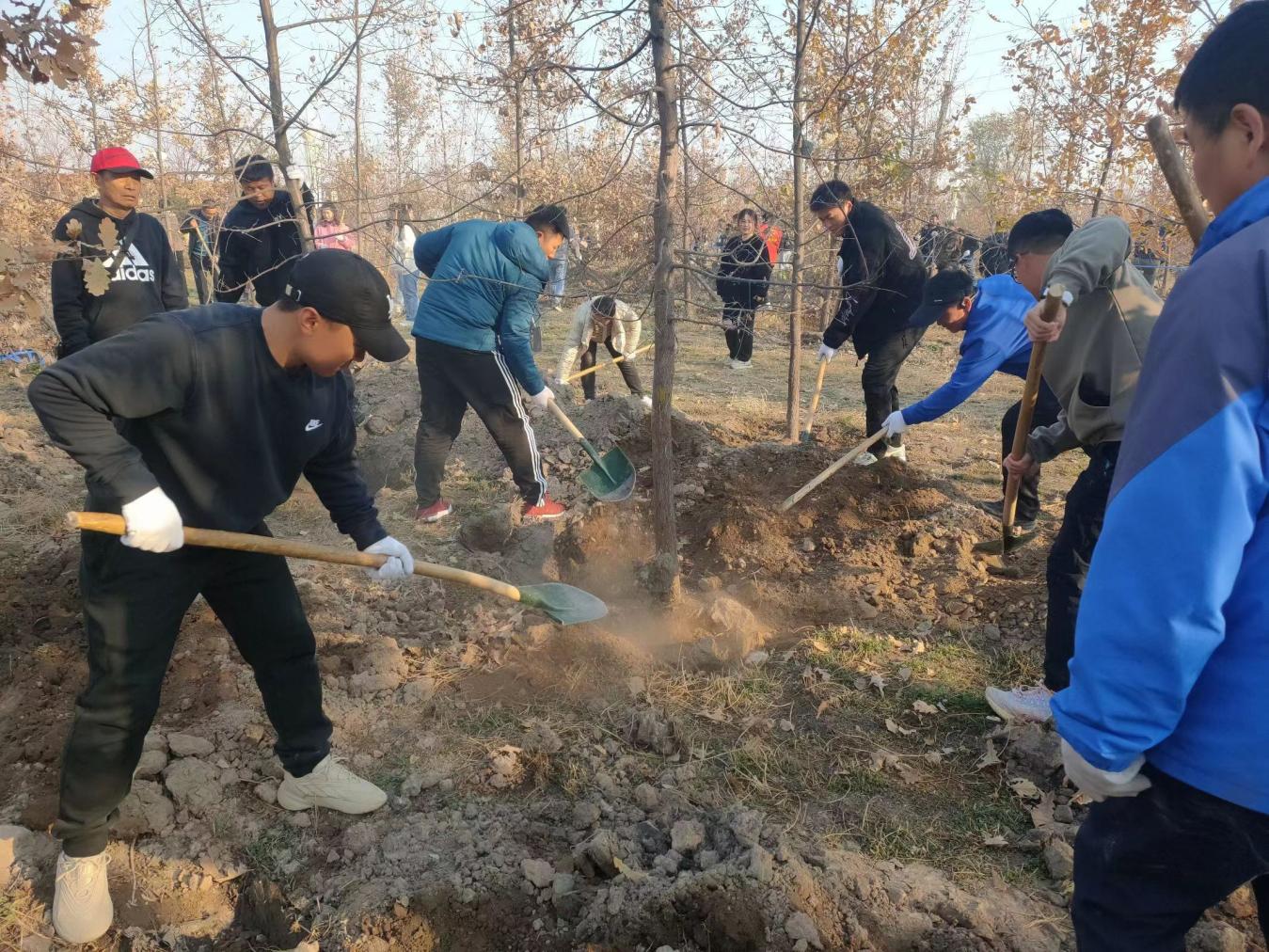 ? ? ? ?11月8日下午,大家围拢在一起,认真聆听讲解植树的相关步骤以及植树的注意事项。随后,全体教师们纷纷拿起自己手中的植树工具走进植树场地,公共基础教学部义务劳动活动正式开始。大家相互配合、分工明确、干劲十足,铲土填坑、挥锹培土、夯实土层、浇水灌根,呈现出热火朝天的劳动场面。