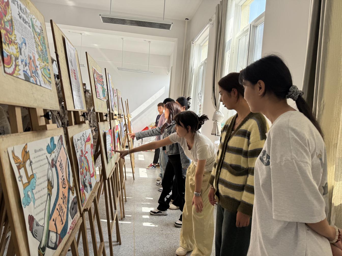 同时,在9月19日开展手抄报、海报设计评比大赛,大赛吸引了全院师生的广泛参与,参赛作品内容丰富多彩,形式新颖独特。经过初步筛选和评审,20件优秀获奖作品在学术报告厅进行展示。